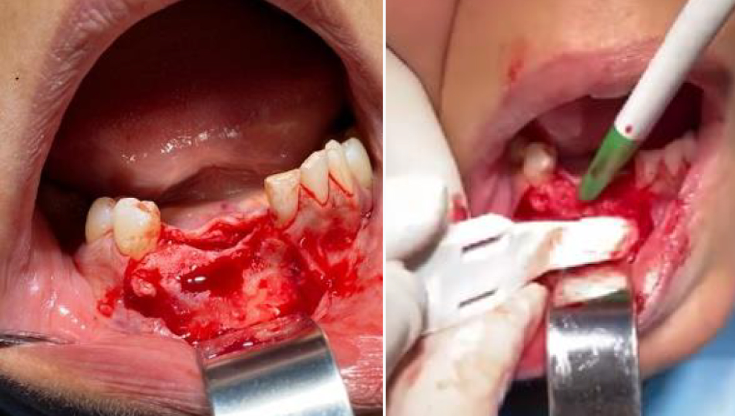 - Autologous bone graft was harvested with the Powerbone Bone Scraper to ensure that the patient had enough bone tissue for the implant. Then Powerbone Cortical Plate was used and the patient's lower palate was closed