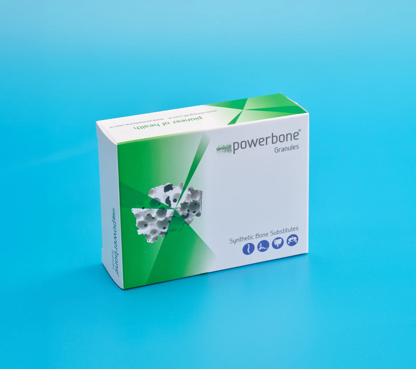 Powerbone Biphasic Granule is used in dental and orthopedic surgeries to support bone regeneration by providing a stable and bioactive scaffold.
