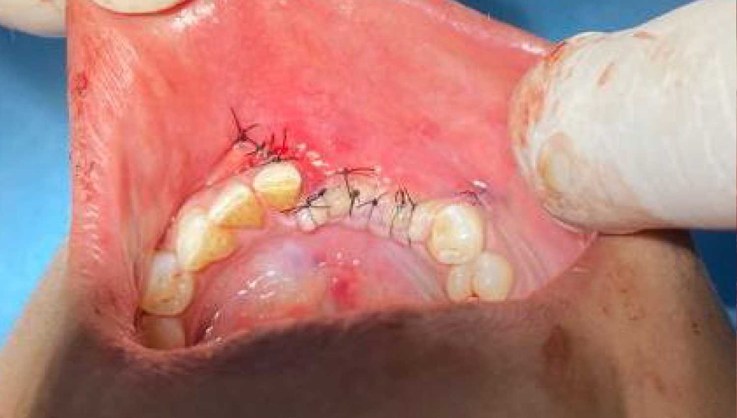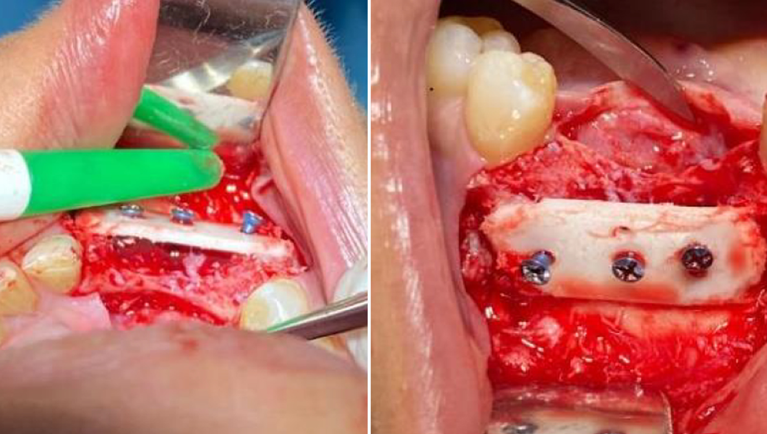 - Autologous bone graft was harvested with the Powerbone Bone Scraper to ensure that the patient had enough bone tissue for the implant. Then Powerbone Cortical Plate was used and the patient's lower palate was closed