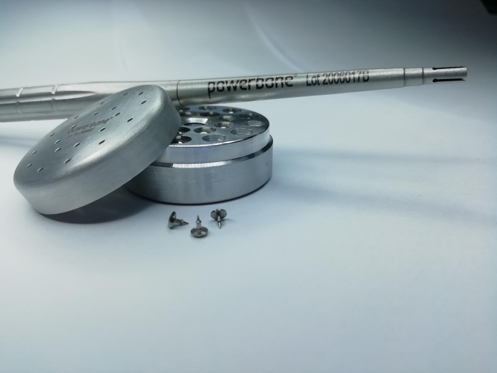Powerbone Titanium Pin Set is used for securing both resorbable and nonresorbable membranes in guided bone regeneration procedures.